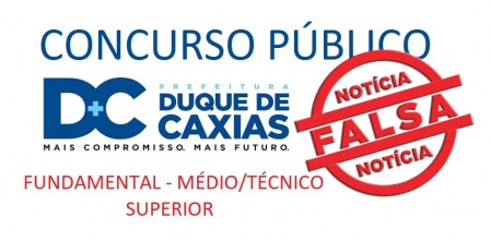 A Prefeitura Municipal de Duque de Caxias vem a público esclarecer que a divulgação que está sendo compartilhada, através do linkhttp://www.abertavagas.com/p/prefeitura.html?m=1, convocando para um CONCURSO PÚBLICO promovido pela PMDC, é uma notícia FALSA, mas conhecida nas redes sociais digitais como “fakenews”. .