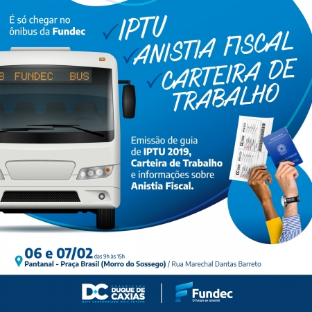 O bairro Pantanal recebe, nesta quarta e quinta-feira (06 e 07/02), o ônibus de serviços gratuitos da PMDC..
