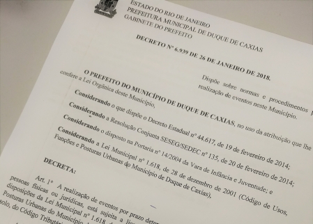 A Prefeitura de Duque de Caxias, através do Decreto nº 6.939, de 26 de janeiro de 2018, cria normas e procedimentos para a realização de eventos dentro do município. .