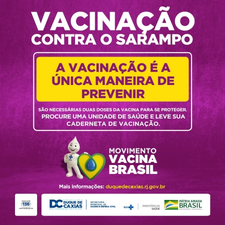 Com o objetivo de interromper a circulação do vírus e bloquear a incidência de casos de sarampo no município, a Prefeitura de Duque de Caxias, através da Secretaria Municipal de Saúde e Defesa Civil (SMSDC), segue com a aplicação da vacina contra o sarampo em mais de 50 unidades de saúde espalhadas pelos quatro distritos da cidade. A prioridade é imunizar e verificar as cadernetas de vacinação das crianças de 6 meses a 2 anos, além de fazer o reforço vacinal em jovens e adultos até 49 anos. .