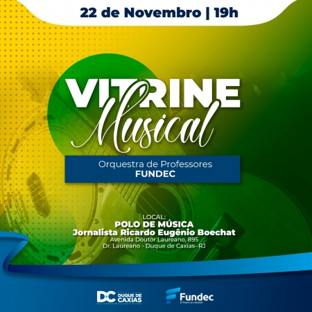 A Prefeitura de Duque de Caxias, através da Fundec (Fundação de Apoio à Escola Técnica, Ciência, Tecnologia, Esporte, Lazer, Cultura e Políticas Sociais) realiza no dia 22/11, às 19h, a sexta edição do projeto Vitrine Musical, no Polo de Música Ricardo Eugênio Boechat, no bairro Dr. Laureano. A entrada é gratuita. .