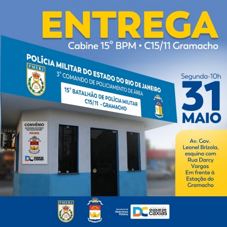 O bairro do Gramacho, no primeiro distrito de Duque de Caxias, vai contar com mais segurança a partir da próxima segunda-feira (31/05). A nova cabine da Polícia Militar, que foi totalmente reformada pela Secretaria Municipal de Obras, ficará na Av. Governador Leonel de Moura Brizola, na esquina com a Rua Darcy Vargas (em frente à estação de trem), será entregue pelo prefeito Washington Reis e o comandante do 15º Batalhão da PM, tenente-coronel Alexandre Mescolin, aos moradores da região. .