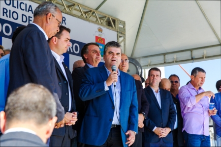 O presidente eleito Jair Bolsonaro e o prefeito Washington Reis participaram nesta segunda-feira, 17/12, da inauguração do lll Colégio da Polícia Militar do Estado do Rio de Janeiro Percy Geraldo Bolsonaro, no bairro Jardim Gramacho, em Duque de Caxias. A escola foi batizada com o nome do pai de Bolsonaro, por iniciativa do deputado estadual Rosenverg Reis. .