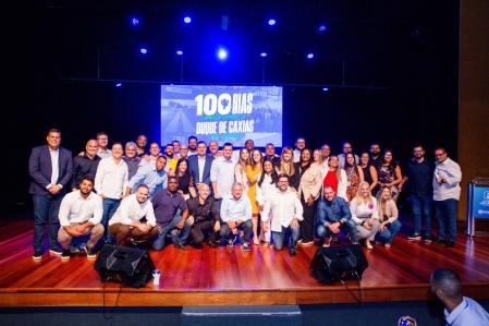 O prefeito de Duque de Caxias, Netinho Reis, juntamente com seu secretariado, apresentou na noite desta terça-feira (15), as realizações dos 100 primeiros dias de governo. O objetivo do encontro foi alinhar as ações, identificar novos desafios e propor soluções para o desenvolvimento do município sempre com foco na melhoria da qualidade de vida, do bem estar e da segurança dos caxienses. O evento foi realizado no Teatro Raul Cortez, nesta terça-feira (15/04)..