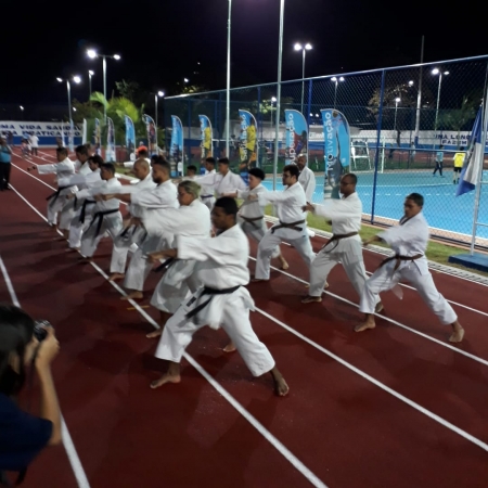No último sábado (26), centenas de crianças, jovens e adultos que participam das atividades esportivas do projeto Aqui tem Esporte, da Secretaria Municipal de Esporte e Lazer de Duque de Caxias, lotaram o ginásio esportivo da Vila Olímpica no 1º Festival de Lutas Mestre Júlio Inocêncio. O prefeito Washington Reis e o secretário Sérgio Corrêa participaram do evento junto com outras autoridades e representantes de federações esportivas..