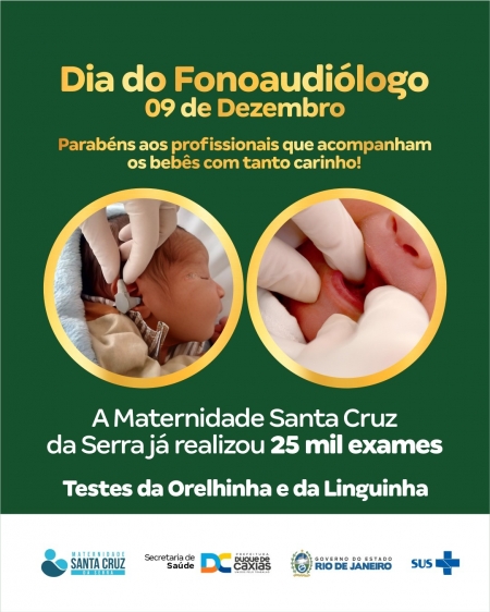 DIA DO FONOAUDIÓLOGO É COMEMORADO COM RECORDE DE 25 MIL EXAMES DE ORELHINHA E LINGUINHA REALIZADOS NA MATERNIDADE DE SANTA CRUZ DA SERRA