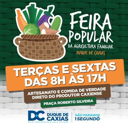 A Feira Popular da Agricultura Familiar de Duque de Caxias é uma conquista importante na promoção da Segurança Alimentar e Nutricional e na valorização do produtor caxiense. Além de alimentos sem agrotóxicos e mais saudáveis, o visitante encontra também uma diversidade de trabalhos artesanais..