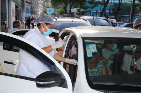 Os idosos que aguardavam a segunda dose para completar a imunização contra a Covid-19, puderam se vacinar nesta quarta-feira (10/03), no bairro Dr. Laureano, em Duque de Caxias. O posto de vacinação aconteceu por meio do sistema drive thru montado na praça em frente ao Hospital do Olho Julio Cândido de Brito, e os idosos que chegaram a pé, também foram imunizados..