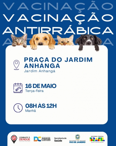 A vacinação de cães e gatos acontece nesta terça-feira (16), no Jardim Anhangá, e na quinta-feira (18), no Parque Beira-Mar e no Parque Duque A Secretaria Municipal de Saúde de Duque de Caxias, através da Superintendência de Vigilância Ambiental, Vetores e Zoonoses (SVAVZ), segue com a campanha de Vacinação Antirrábica para cães e gatos no município..