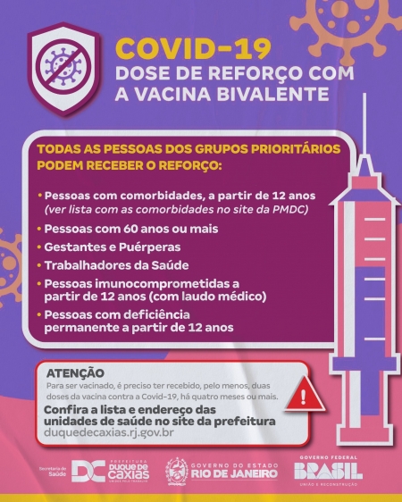 DUQUE DE CAXIAS AMPLIA VACINAÇÃO COM DOSE BIVALENTE CONTRA A COVID-19 PARA PESSOAS COM COMORBIDADES