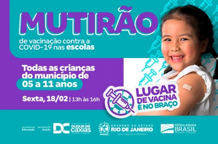 PREFEITURA DE DUQUE DE CAXIAS PROMOVE MUTIRÃO DE VACINAÇÃO INFANTIL NAS ESCOLAS NOS DIAS 18 E 22 DE FEVEREIRO