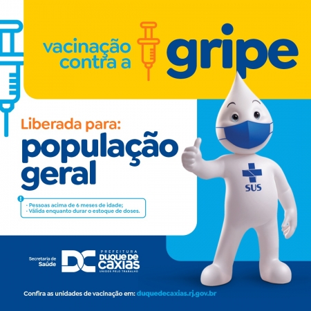 Diante do aumento de notificações de casos da gripe influenza no Estado, a Prefeitura de Duque de Caxias, através da Secretaria Municipal de Saúde, reforça que a vacina da gripe continua disponível nas unidades de saúde do município. Toda a população com idade acima de seis meses pode receber o imunizante..