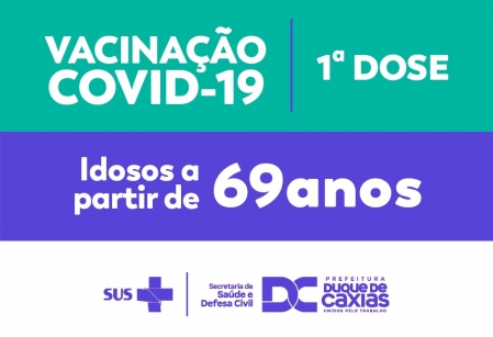 A Prefeitura de Duque de Caxias promove nesta quarta-feira (24/03), a partir das 7 horas, a aplicação da primeira dose da vacina contra a Covid-19 para pessoas de 69 anos ou mais no município. A Prefeitura ressalta que é preciso apresentar comprovante de residência e documento de identidade no ato da vacinação..