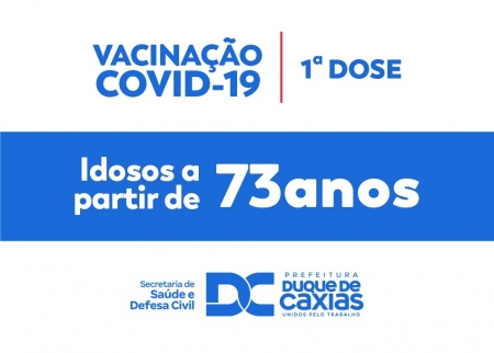 A Prefeitura de Duque de Caxias promove neste fim de semana, nos dias 20 e 21 de março, a partir das 7 horas, aplicação da primeira dose da vacina contra a Covid-19 para pessoas acima de 73 anos ou mais no município. A Prefeitura ressalta que é preciso apresentar comprovante de residência e documento de identidade no ato da vacinação..