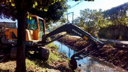 O programa de combate as enchentes em Duque de Caxias não para. A Secretaria Municipal de Obras vem promovendo ações de limpeza de vegetação e desassoreamento de rios e canais nos quatro distritos visando diminuir os impactos das fortes chuvas do período de verão. .