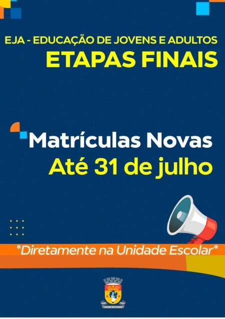 A Prefeitura de Duque de Caxias informa que estão abertas as inscrições para a Educação de Jovens e Adultos (EJA) até o dia 31/07. Esta etapa educacional é voltada para pessoas que não tiveram acesso ou não puderam concluir seus estudos na idade apropriada. A EJA também oferece um currículo pedagógico adaptado às necessidades dos alunos. Os interessados em se inscrever deverão ter a idade mínima de 15 anos e apresentarem os seguintes documentos: .