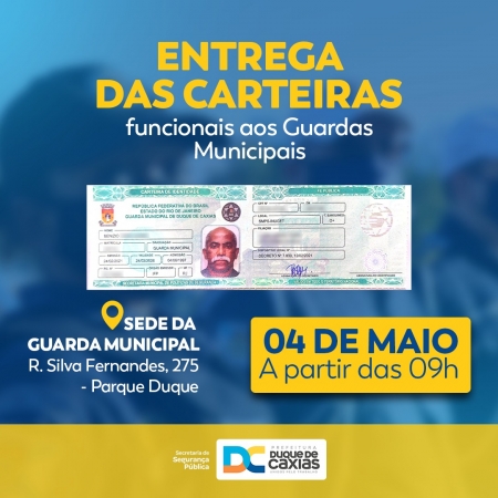 A Prefeitura de Duque de Caxias vai realizar nesta terça-feira (04/05), às 9h, a entrega das carteiras funcionais aos Guardas Municipais. O evento acontecerá na sede da Guarda Municipal, localizada no bairro Parque Duque e, contará com a presença do prefeito Washington Reis. .