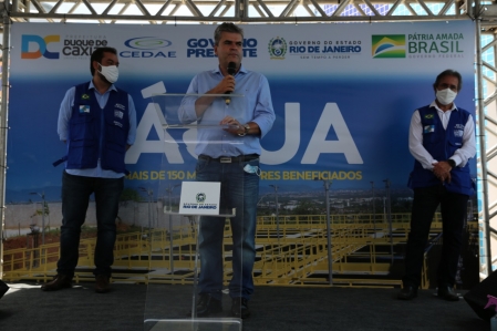 O governador em exercício, Cláudio Castro, e o prefeito de Duque de Caxias, Washington Reis, inauguraram nesta segunda-feira (05/04), o reservatório do Morro do Motocross, em Jardim Primavera. A nova estação de tratamento já está beneficiando mais de 150 mil moradores da região..