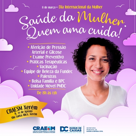 O Dia Internacional da Mulher (08/03) será celebrado em Duque de Caxias com uma grande ação de saúde, o “Saúde da Mulher - Quem Ama Cuida”. A data marca ainda a entrega, pelo prefeito Washington Reis, do primeiro mamógrafo digital do município. .