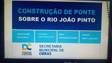 A Secretaria Municipal de Obras de Duque de Caxias deu início ao trabalho de sondagem dos terrenos que margeiam o Rio João Pinto, em Xerém, para construção de uma ponte que vai ligar a Praça de Xerém, pela Rua Carlos Mateus, com a Travessa Venância. .