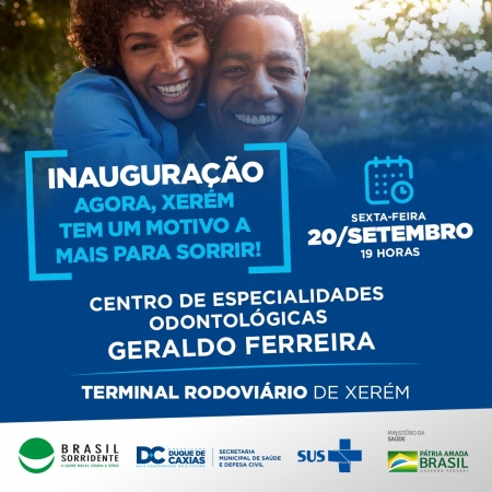 Na próxima sexta-feira, 20/09, às 19h, a Prefeitura de Duque de Caxias vai inaugurar o CEO IV – Centro de Especialidades Odontológicas Geraldo Ferreira, em Xerém. O novo CEO IV está instalado no Terminal Rodoviário, no ponto final de Xerém. O nome da unidade presta homenagem ao morador e ex-administrador regional da PMDC no distrito de Xerém, Sr. Geraldo Ferreira, falecido este ano. .