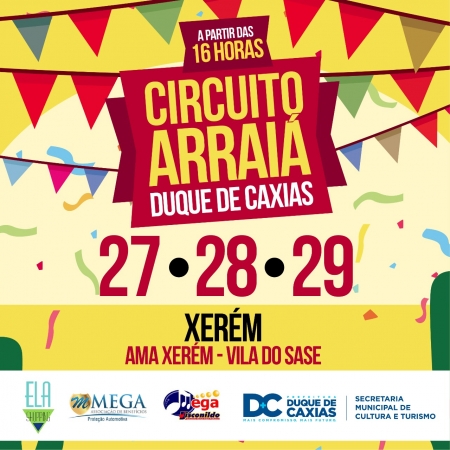 A temporada de festas juninas já começou e Duque de Caxias já está se preparando para as comemorações. O município será o primeiro a receber o Circuito Arraiá, que também passará por outras regiões do estado, e chega em Santa Cruz da Serra em 6, 7 e 8 de julho, na Praça da Matriz. Em seguida, nos dias 13, 14 e 15/07, o festejo segue para a Praça do Rosário, em Saracuruna. O Circuito Arraiá chega ao primeiro distrito de Caxias nos dias 20 e 22 de julho, na Praça da Apoteose, Vila São Luiz. Para finalizar com chave de ouro, Xerém será sede da despedida do Arraiá, nos dias 27, 28 e 29 de julho. Os festejos acontecem na Rua Benjamin Dumont (AMA Xerém), Vila Santa Alice..